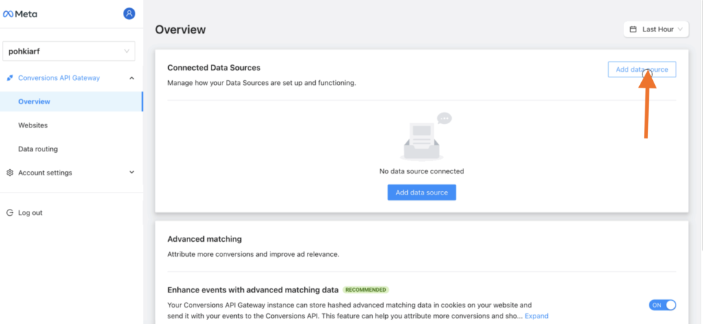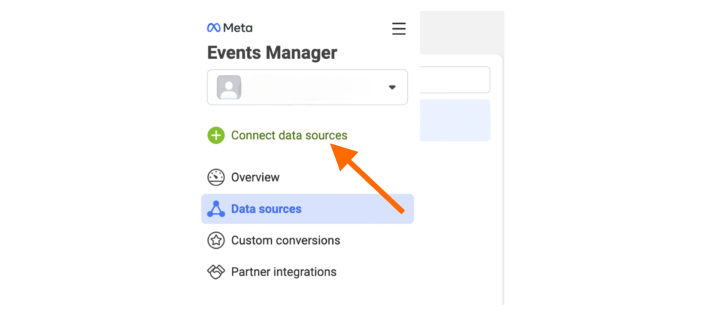 1.1 In the Meta Ads account, go to Events Manager and select “Connect data sources”.