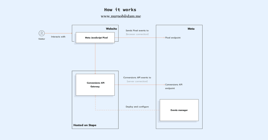 When the Pixel is triggered, the data about the event is sent to the Conversions API Gateway. In this case, the data is processed on your server instead of the user’s browser, like Facebook Pixel alone.